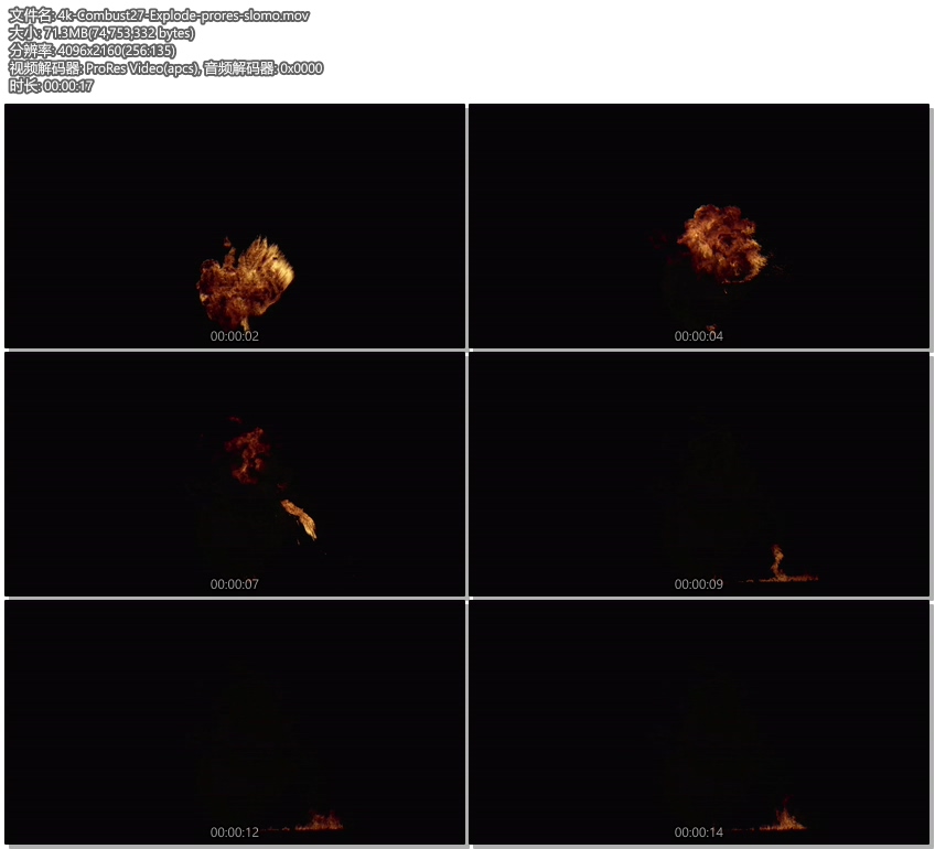 使用高端专业相机拍摄的燃烧爆炸视频素材,给你更多的细节和动态范围。已导出为苹果QuickTime Pro格式,4K的分辨率。