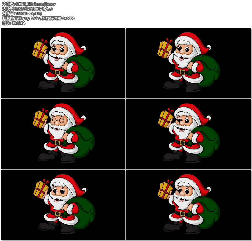 拿着礼物的圣诞老人,素材可直接抠像, 视频编码为Photo PNG ALPHA
