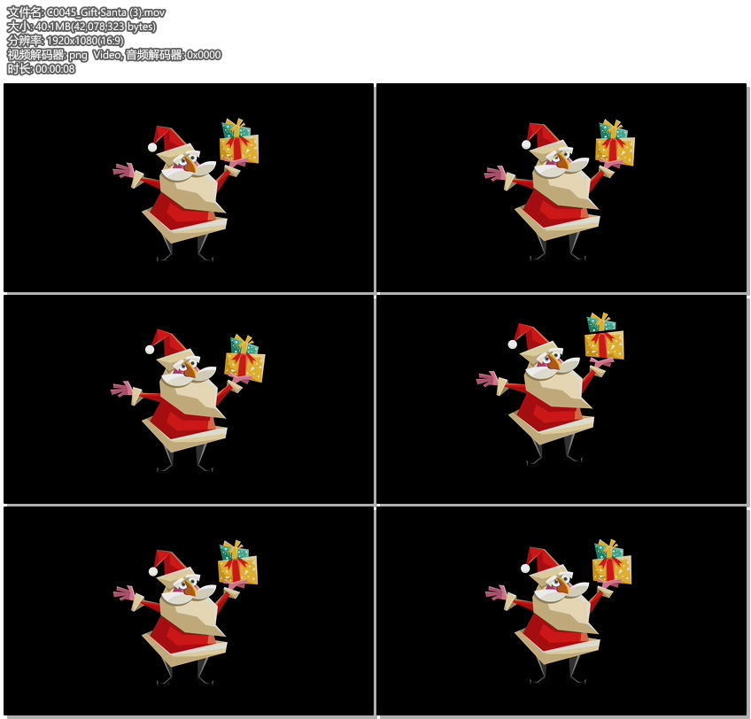 拿着礼物的圣诞老人,素材可直接抠像, 视频编码为Photo PNG ALPHA