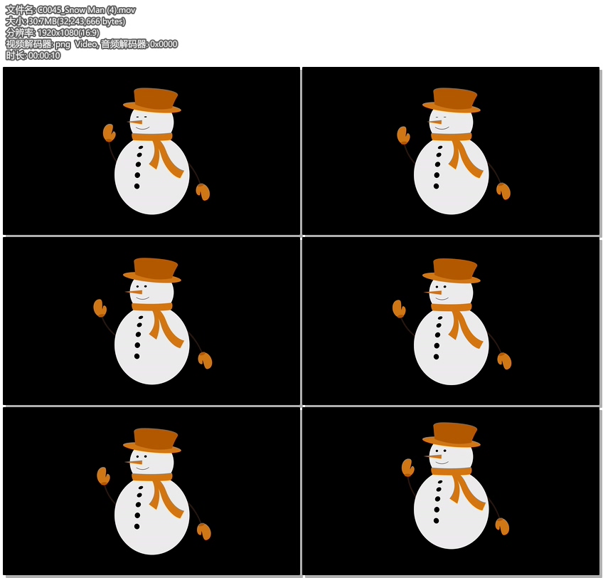 Snow Man,卡通小雪人,可直接替换视频背景, 视频编码为Photo PNG ALPHA