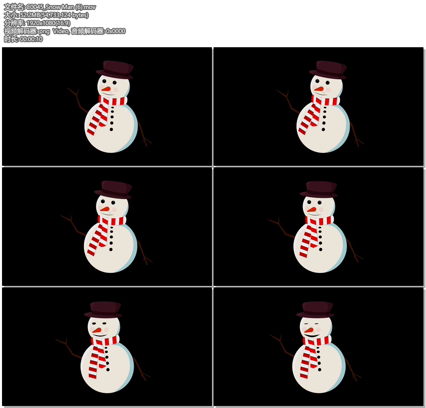 Snow Man,卡通小雪人,可直接替换视频背景, 视频编码为Photo PNG ALPHA