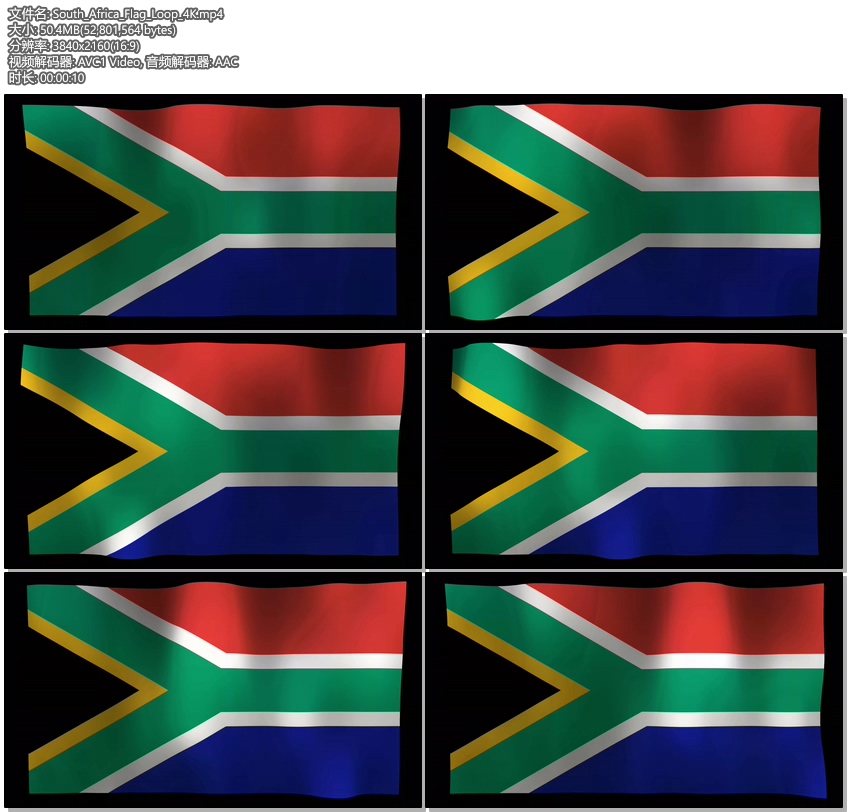 Here in this stock video you'll find the flag of South Africa waving in a looping pattern. Please be sure to check out our free downloadable video of a Universal Flag Matte that fits all of our flag stock videos so that you can use it over your designs.