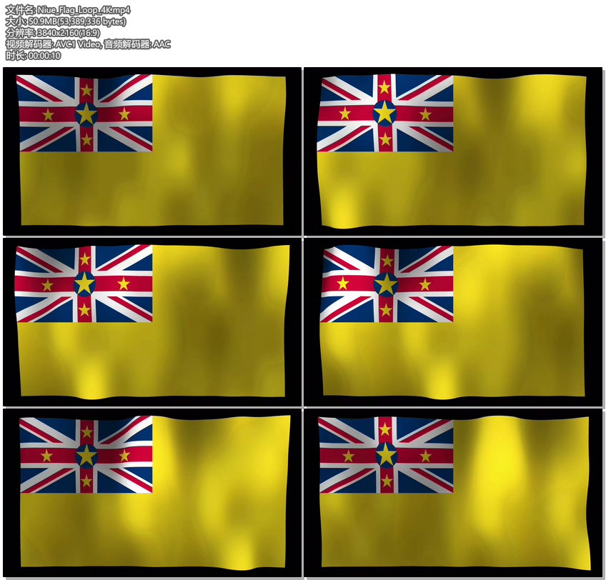 Here in this stock video you'll find the flag of Niue waving in a looping pattern. Please be sure to check out our free downloadable video of a Universal Flag Matte that fits all of our flag stock videos so that you can use it over your designs.