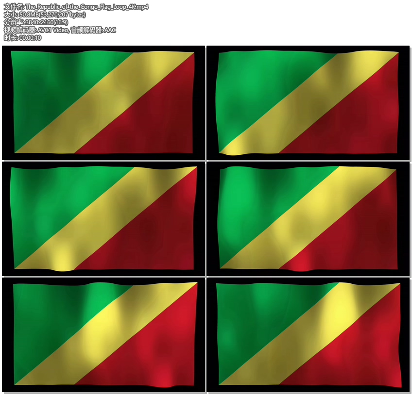 刚果共和国国旗4k动态循环股票视频 在这里股票视频在这里你会发现刚果共和国的国旗挥舞着一个循环模式。