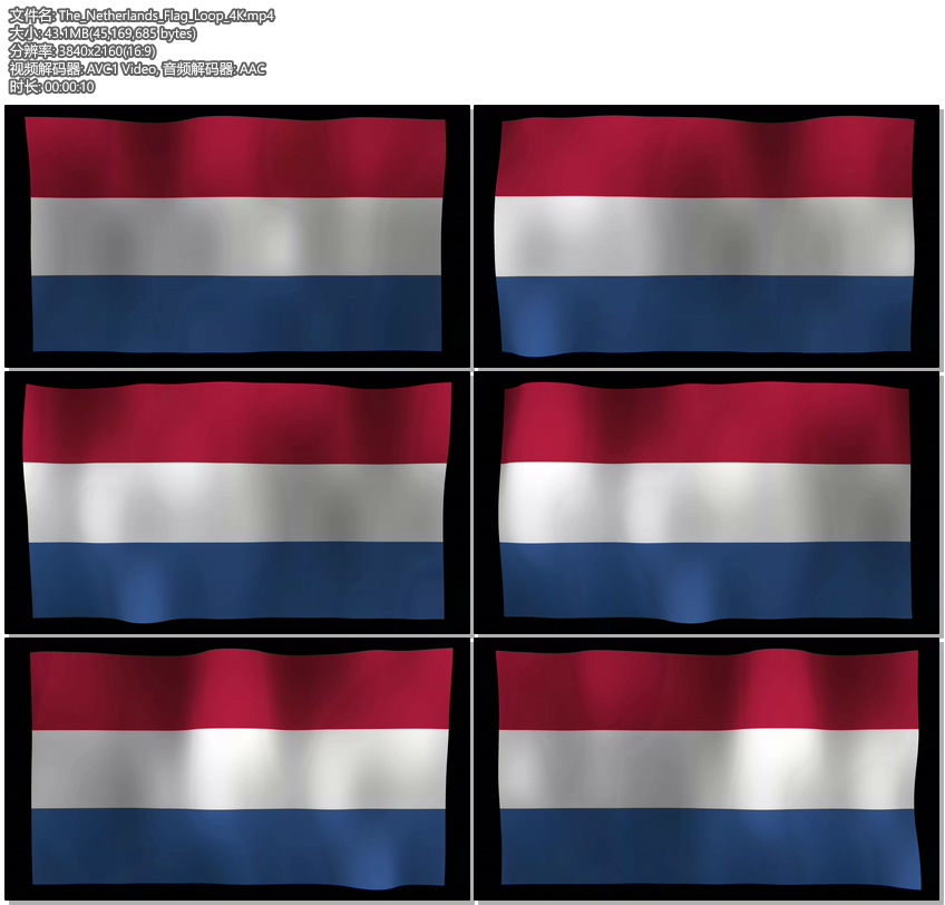 Here in this stock video you'll find the flag of The Netherlands waving in a looping pattern. Please be sure to check out our free downloadable video of a Universal Flag Matte that fits all of our flag stock videos so that you can use it over your designs.