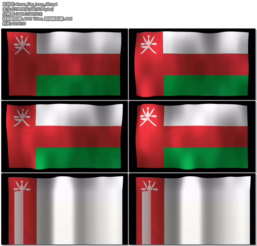 阿曼国旗4k动态循环股票视频 在这个股票视频在这里,你会发现在循环模式中挥舞着征兆的旗帜。