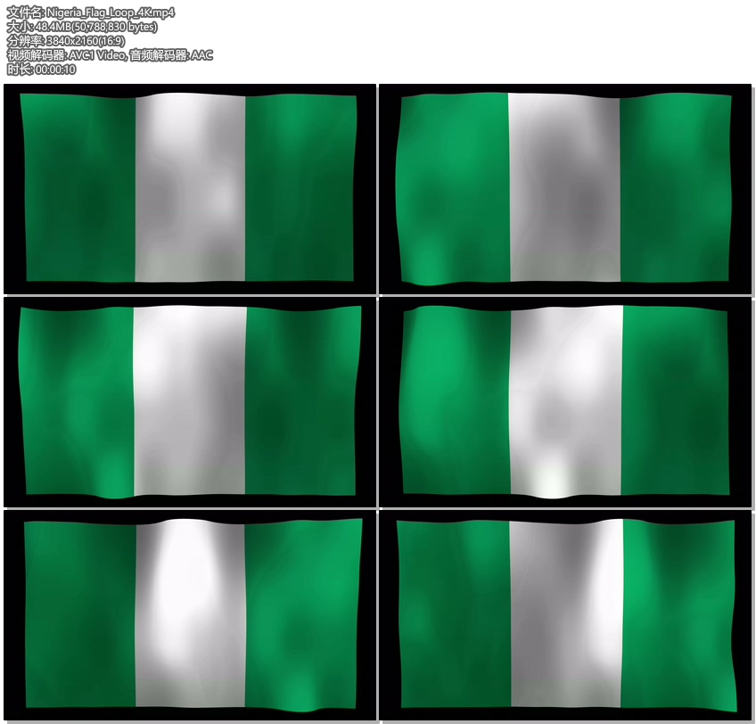 Nigeria Flag 4K Motion Loop股票视频 在这里股票视频在这里你会发现尼日利亚的旗帜在循环模式中挥舞着。