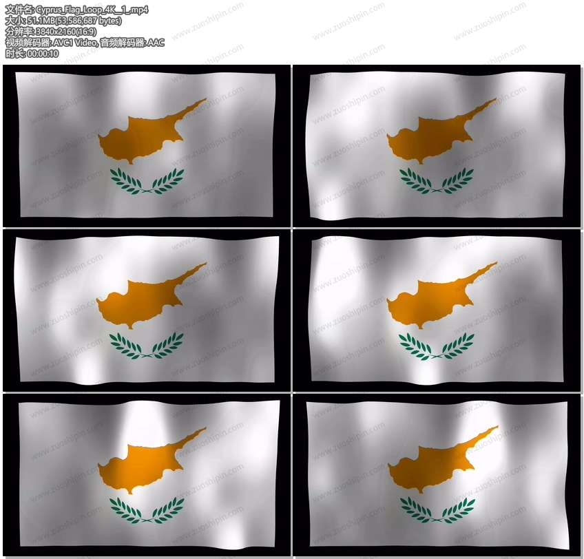 塞浦路斯旗子4K行动圈股票视频 在这个股票视频中,你会发现塞浦路斯的旗帜在循环模式中挥舞着。请务必查看我们的免费下载的Universal Flag Matte视频,该视频适合我们所有的旗帜股票视频,以便您可以在设计中使用它。