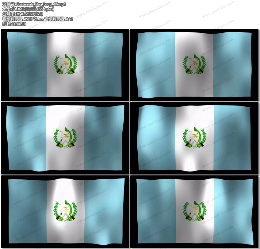 危地马拉旗子4K行动圈股票视频 在这个股票视频中,你会发现危地马拉的旗帜以循环模式挥舞着。请务必查看我们的免费下载的Universal Flag Matte视频,该视频适合我们所有的旗帜股票视频,以便您可以在设计中使用它。