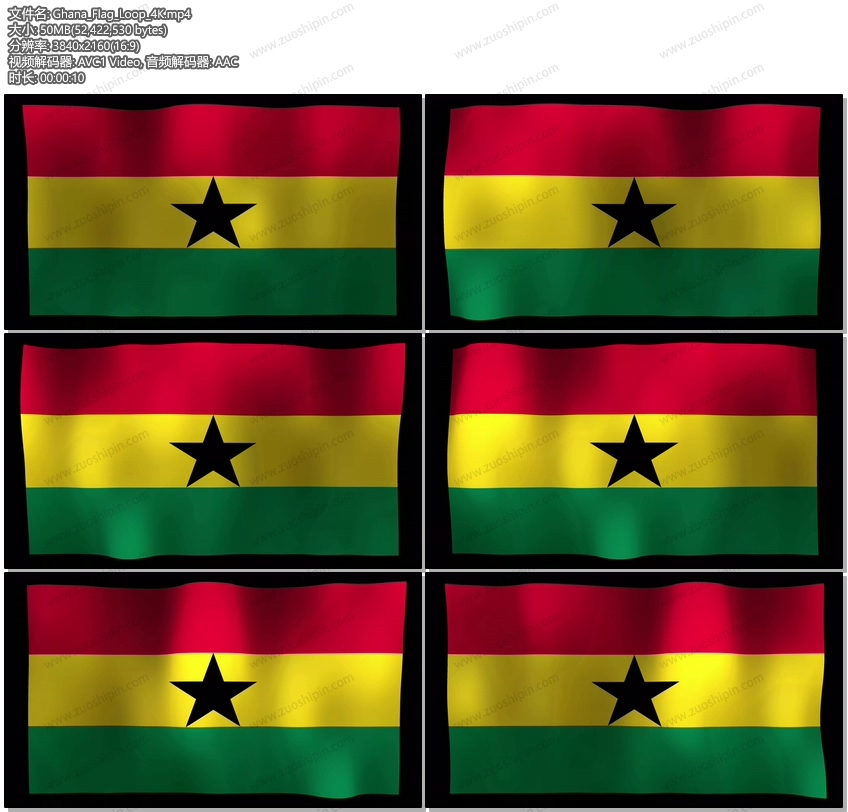 加纳旗子4K行动圈股票视频 在这个股票视频中,你会发现加纳的旗帜以循环模式挥舞着。请务必查看我们的免费下载的Universal Flag Matte视频,该视频适合我们所有的旗帜股票视频,以便您可以在设计中使用它。