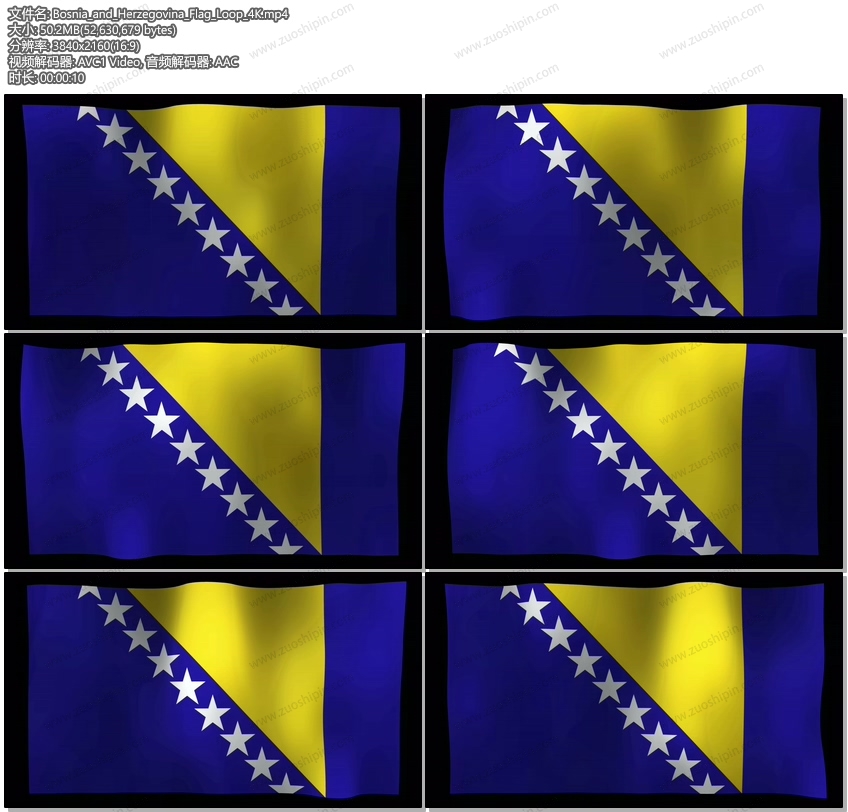 波斯尼亚和黑塞哥维那旗子4K行动圈股票录影 在这个股票视频中,你会发现波斯尼亚和黑塞哥维那的旗帜以循环模式挥舞着。请务必查看我们的免费下载的Universal Flag Matte视频,该视频适合我们所有的旗帜股票视频,以便您可以在设计中使用它。