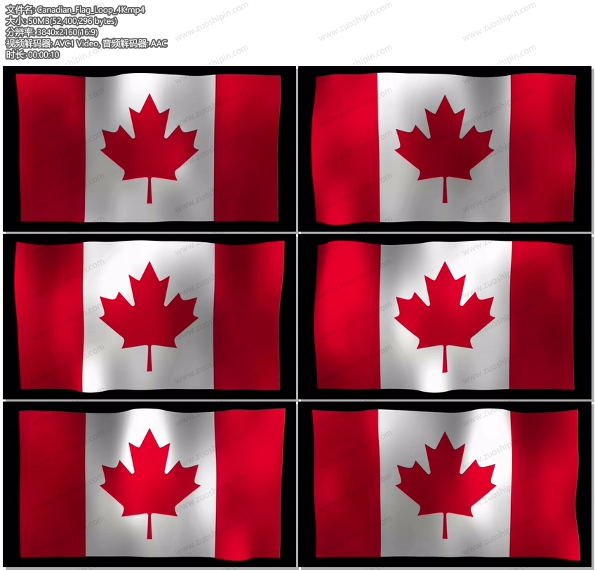 加拿大旗子4K行动圈股票视频 在这个股票视频中,你会发现加拿大国旗以循环模式挥舞着。请务必查看我们的免费下载的Universal Flag Matte视频,该视频适合我们所有的旗帜股票视频,以便您可以在设计中使用它。