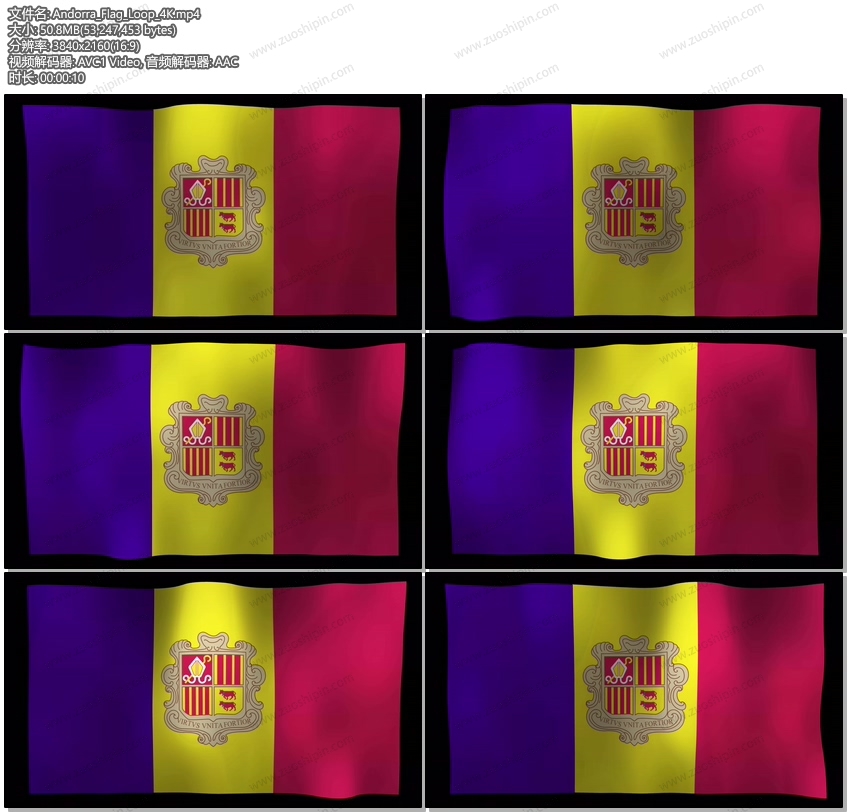 安道尔旗子4K行动圈股票录影 在这个股票视频中,你会发现安道尔的旗帜以循环模式挥舞着。请务必查看我们的免费下载的Universal Flag Matte视频,该视频适合我们所有的旗帜股票视频,以便您可以在设计中使用它。