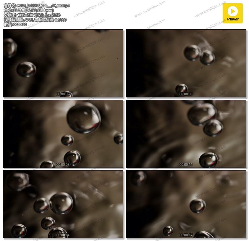 几个水滴慢慢地在一个容器中飞溅4K视频素材