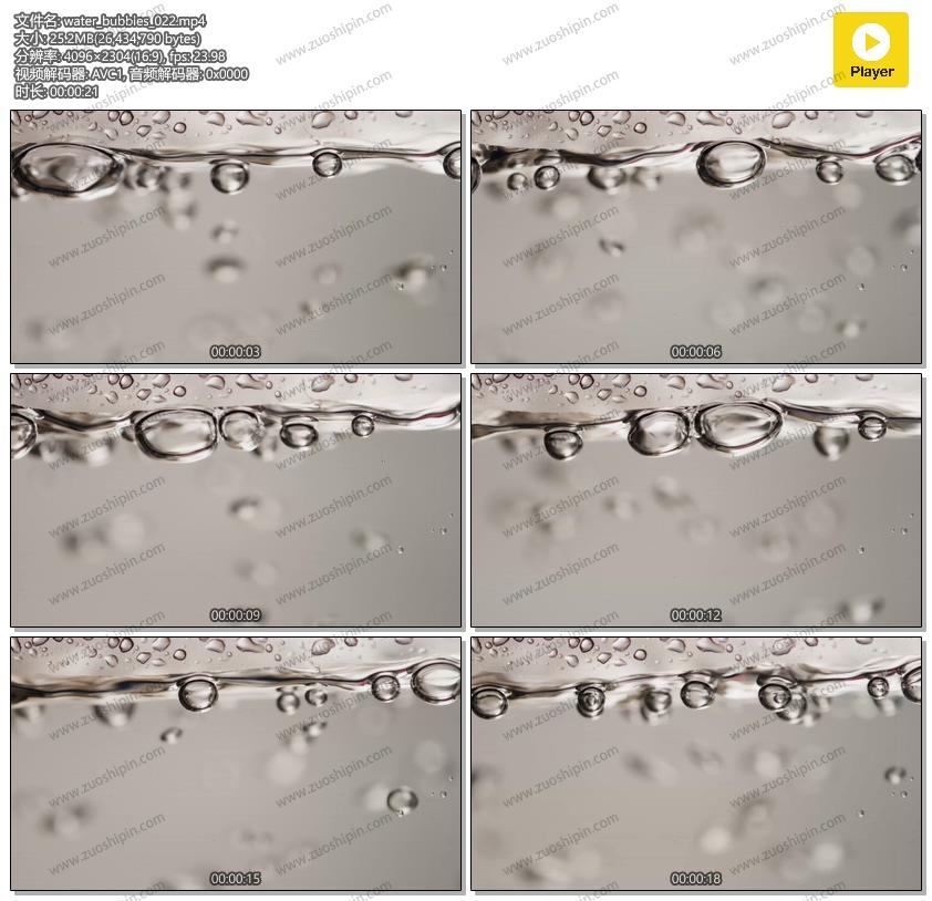 Studio shot of aquarium. Dynamic texture of bright bubbles exploiding on blurred gray background. Ideal for backgrounds in your projects or waterlife topics in your footage. 4K 4096 x 2304 | 24 fps