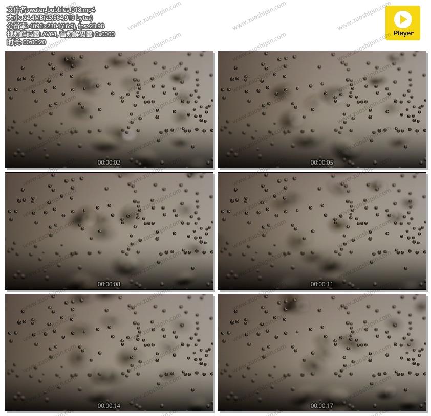 Studio shot of aquarium. Pattern of little bubbles in foreground and blurred bubbles moving fast on gray background. Ideal for backgrounds in your projects or waterlife topics in your footage. 4K 4096 x 2304 | 24 fps
