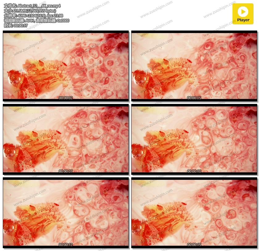 顶视图的油漆黄色和红色混合慢慢创建随机的形状,线条和纹理的多彩混合。 4K剪辑为您的创意项目或您的镜头中丰富多彩的主题。 4K 4096 x 2304 | 24 fps