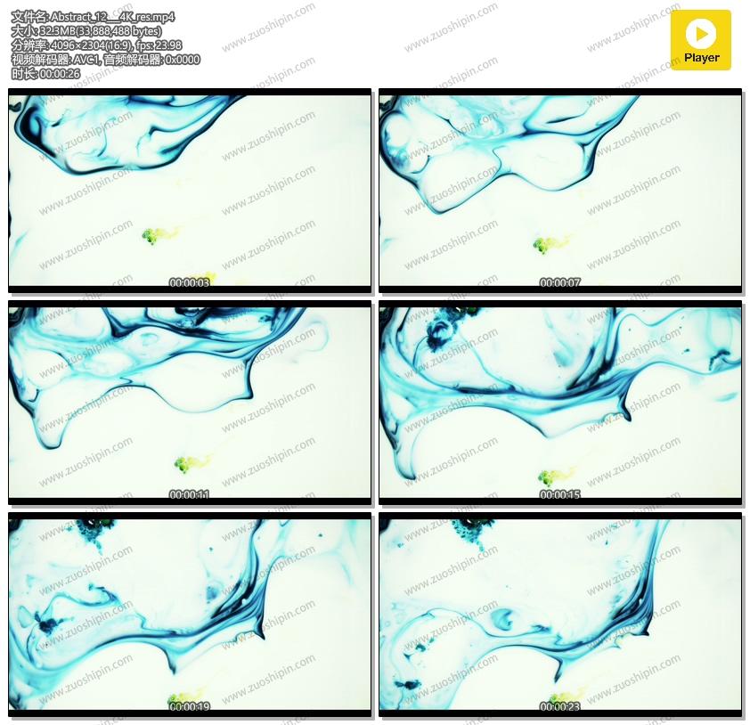 顶视图的油漆蓝色和白色混合慢慢创建随机的形状,线条和纹理的多彩混合。 4K剪辑为您的创意项目或您的镜头中丰富多彩的主题。 4k 4096 x 2304 | 24 fps