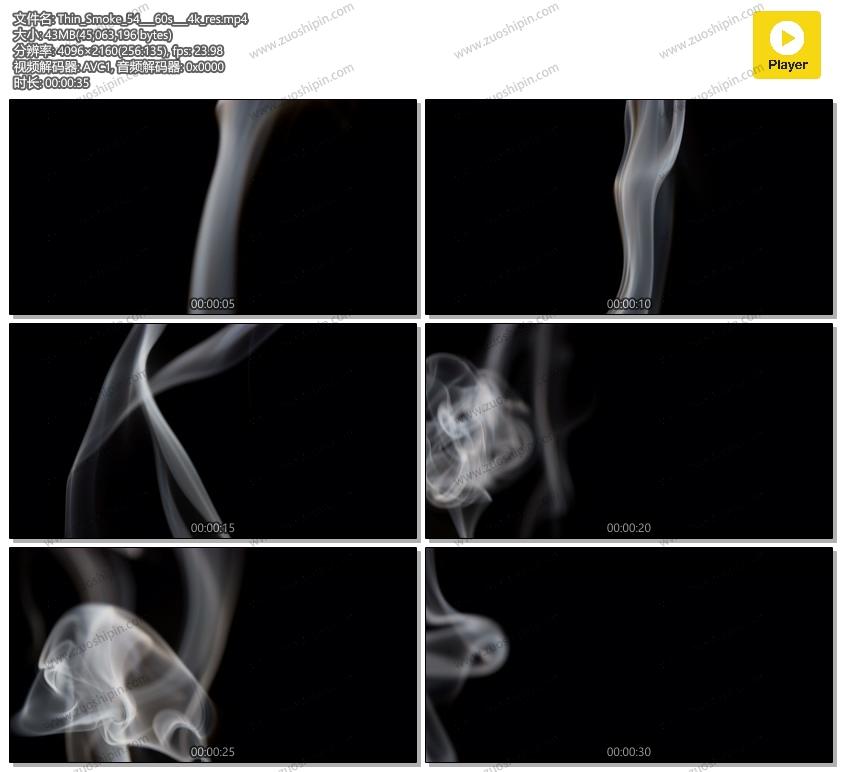 白色烟雾稀薄的线条4K视频素材Thin_Smoke_71___45s___4k_res