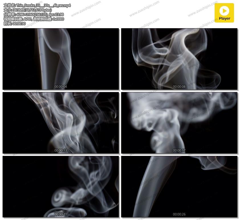 黑背景的美丽的波浪烟雾4K视频素材Thin_Smoke_41___30s___4k_res