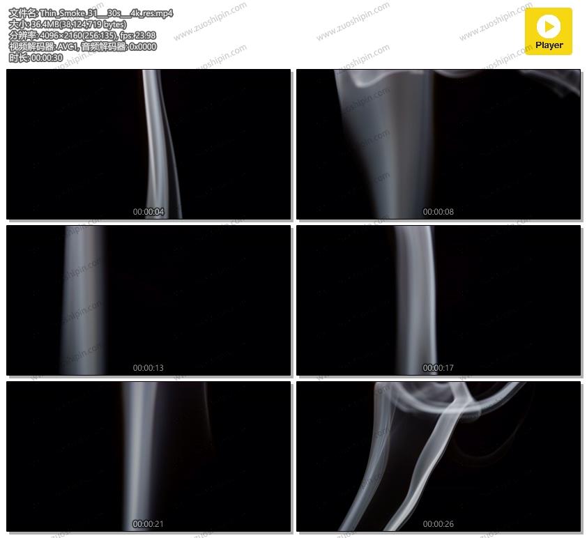 白色烟雾在黑色背景中漂浮4K视频素材Thin_Smoke_7___45s___4k