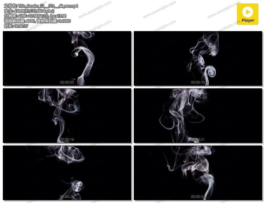室内拍摄的受控烟雾。由白色控制的烟雾在黑暗中上升产生的螺旋。适合您的灵性项目或您的镜头中的神秘主题。 4K 4096 x 1728 | 24 fps