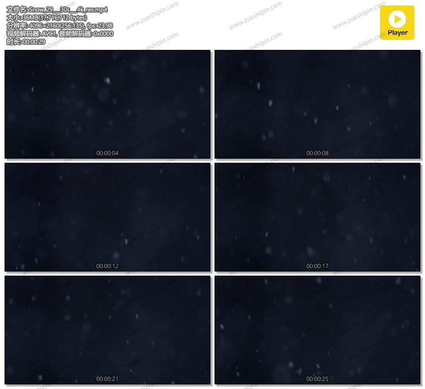 室外拍摄的下雪天。夜拍摄了少量雪花在冷的森林里。适合您的季节项目或您的镜头中的冬季主题。 4K 4096 x 2160 | 24 fps