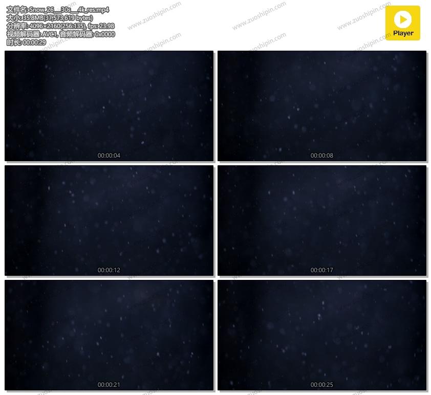 追功网为大家提供高清实拍视频素材风雪尘粉系列素材:深蓝色背景上的雪花落下4K视频素材Snow_26___30s___4k在线预览以及高清源文件的下载服务。