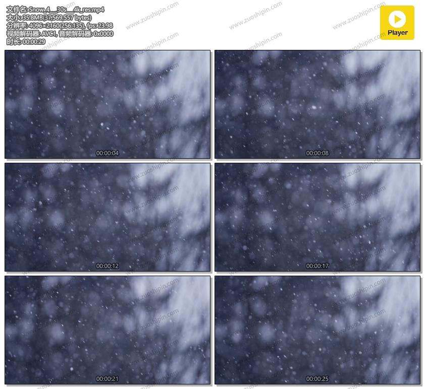 冬天飘落的白色雪花4K视频素材Snow_19___30s___4k_res