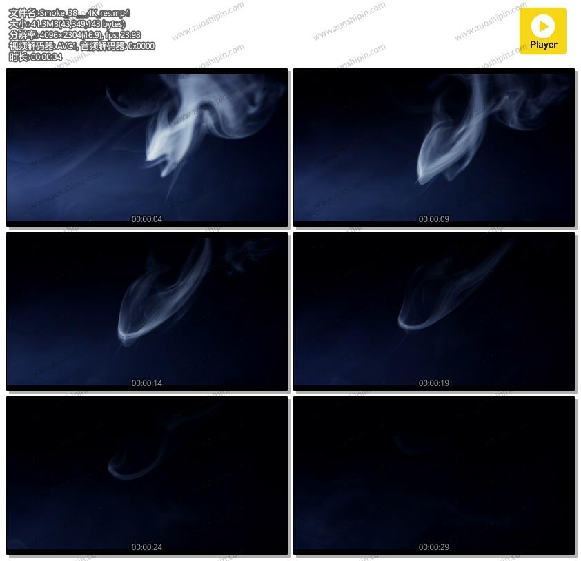 在前景defocused的软的白色烟,聚焦在背景中和消失在4K的黑暗中