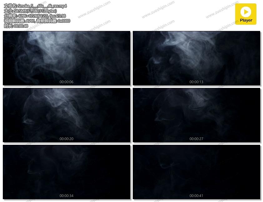 在4K的黑暗中,场景的上半部分的软白烟消失