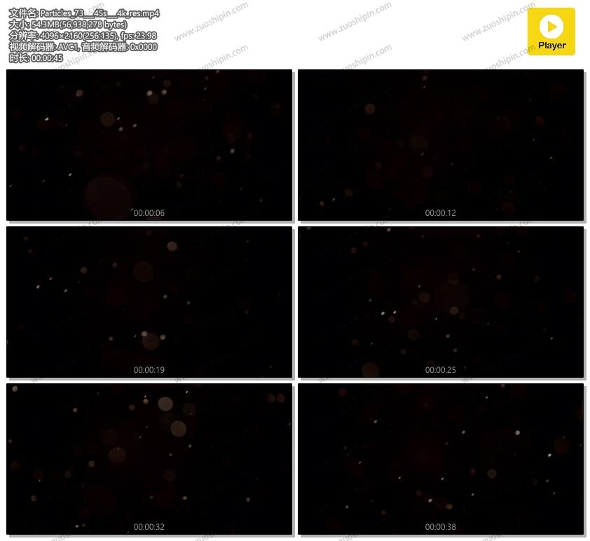 计算机效果的剪辑。 棕褐色和金色颗粒在黑暗中从左下角到右上角穿过场景。 非常适合您项目中的背景或素材中的特效。 4K 4096 x 2160 | 24 fps