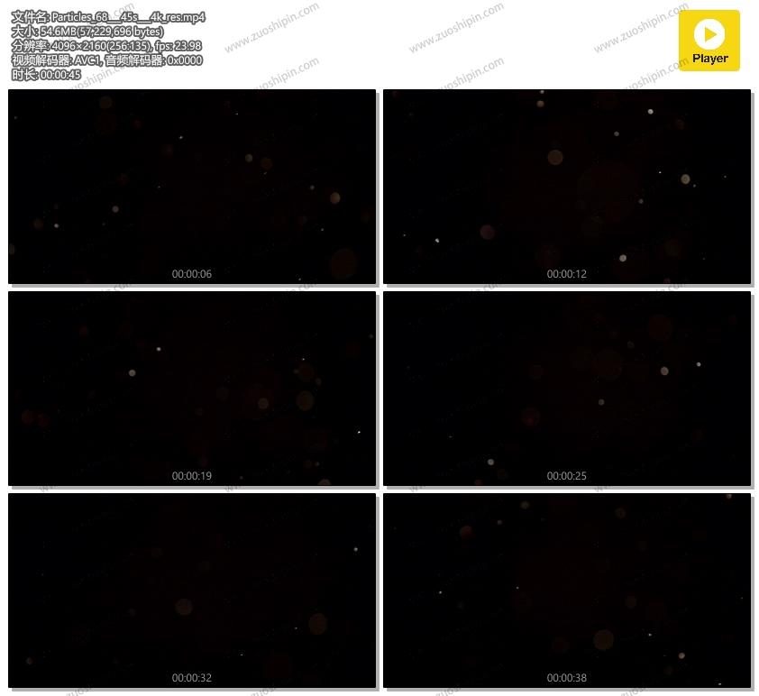 计算机效果的剪辑。 明亮的粒子移动到右上角,具有透明度和散景效果。 非常适合您项目中的背景或素材中的特效。 4K 4096 x 2160 | 24 fps