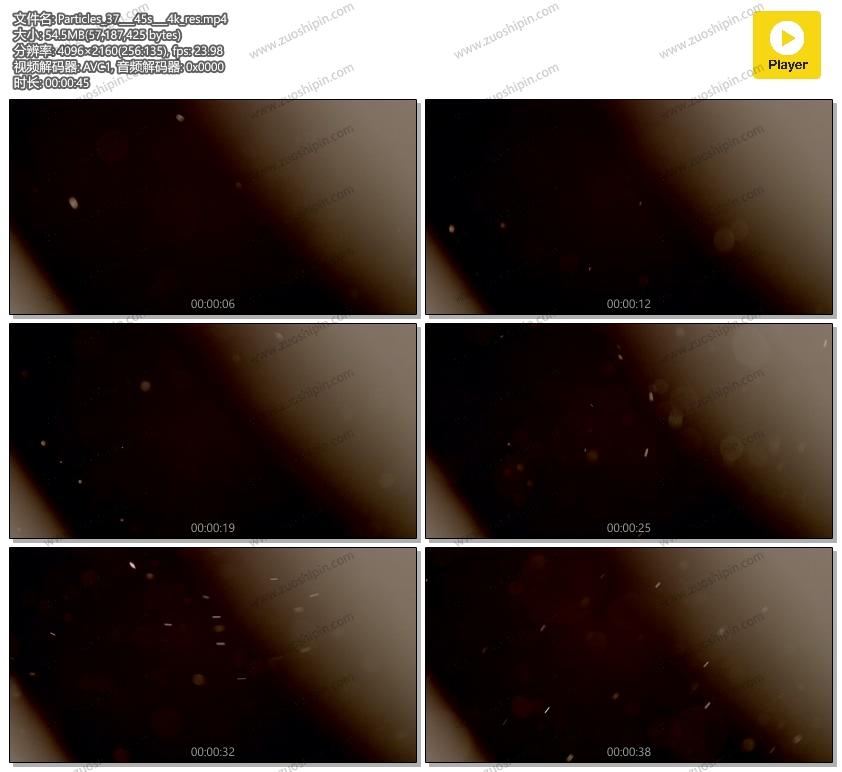 计算机效果的剪辑。 漂浮在与两个光线的黑暗的背景的小微粒。 非常适合您项目中的背景或素材中的特效。 4K 4096 x 2160 | 24 fps