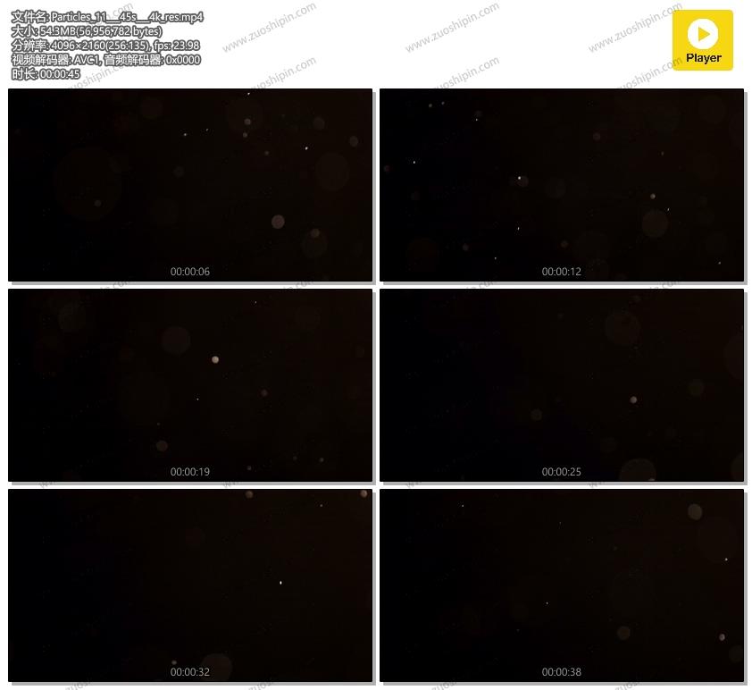 黑暗中漂浮到场景的右侧的光斑4K视频素材Particles_61___45s___4k