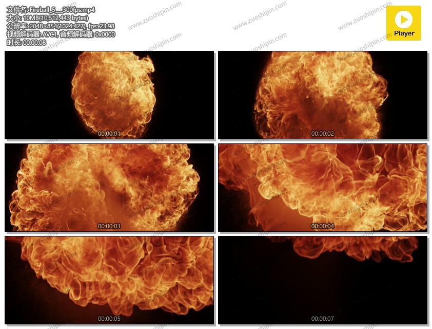 Spectacular clip of fire ignition. 燃烧在黑暗和上升的火球. Ideal for special effects in your projects or fire topics in your footage. 2K 2048 x 854 | 24 fps