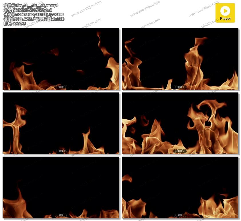 炽热的火焰(半透明)黑色背景4K视频素材Fire_32___45s___4k_res