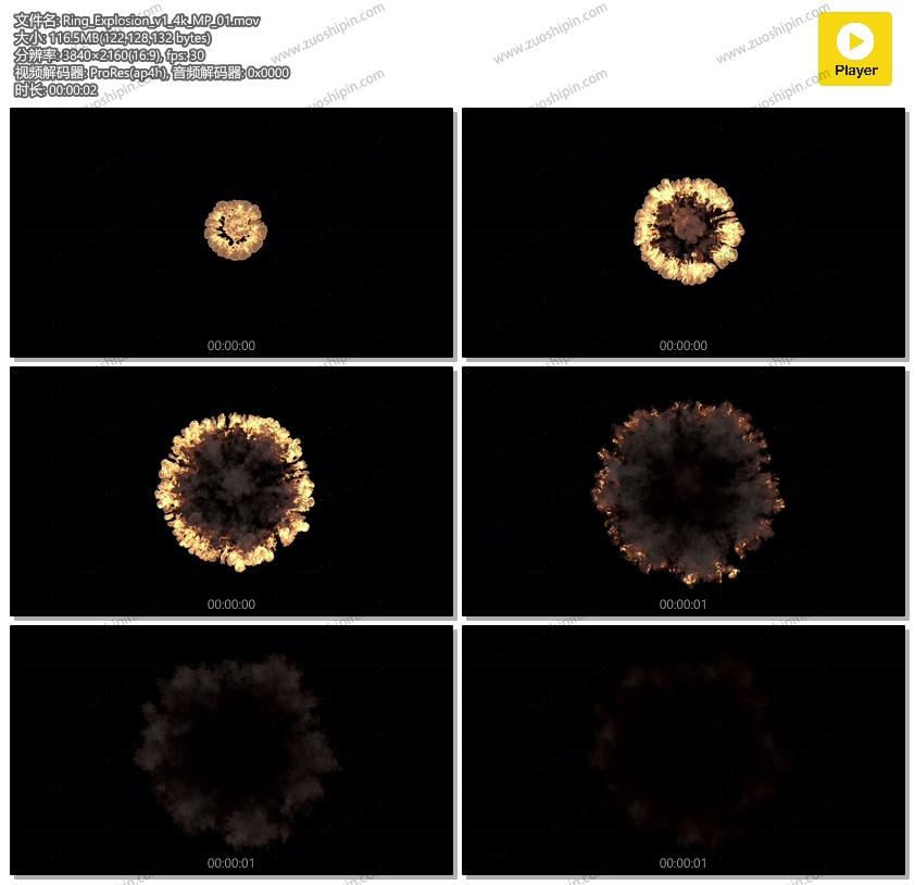 顶视图圆环火爆炸阿尔法通道VFX夹子与烟的在4K