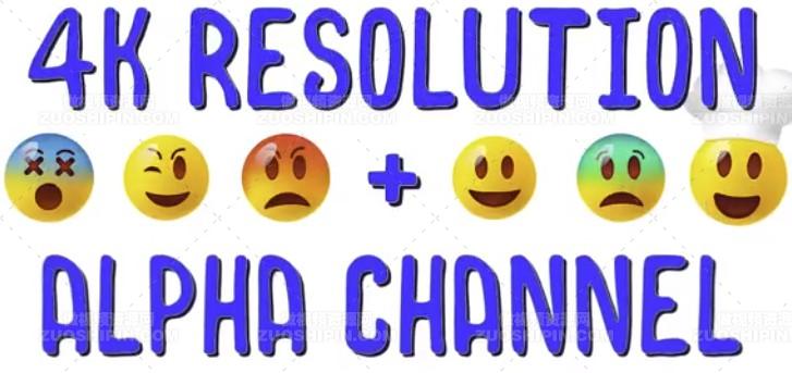 包含8个超级巨大卡通Emoji表情动画4K高清视频素材,到底有多巨大?4K分辨率满屏的那种。MOV格式;有透明通道,直接使用。