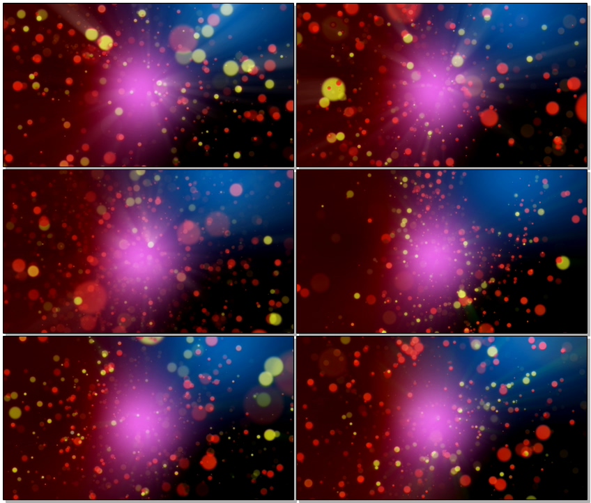 无缝循环的动态背景视频素材,素材以粒子、圆点、光斑等特效为主题,展示了6种不同的色彩