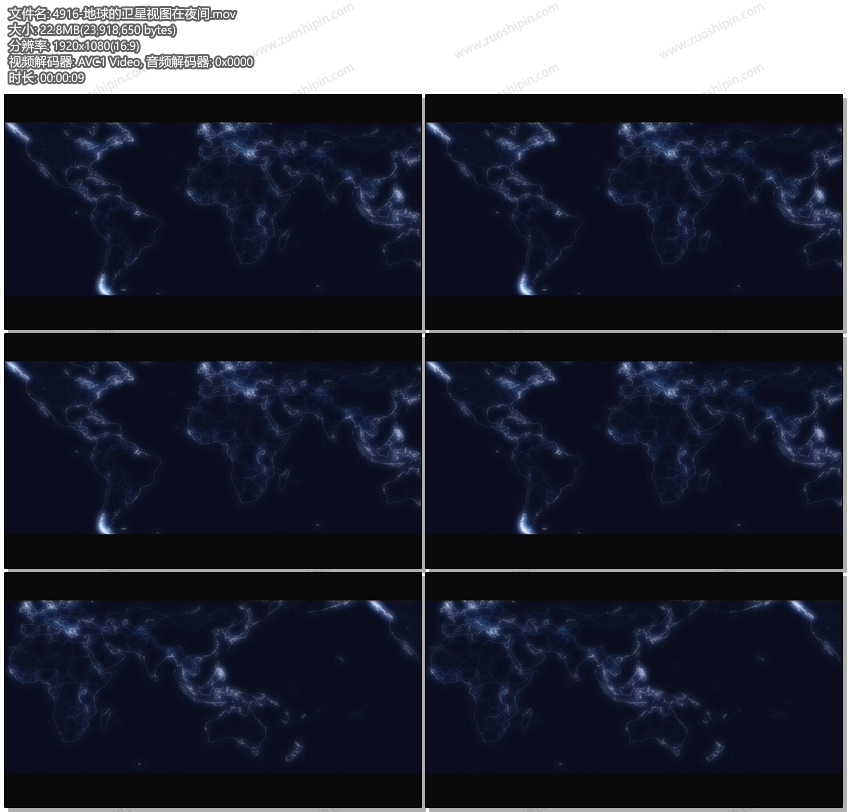 卫星视图拍摄夜间的地球视频