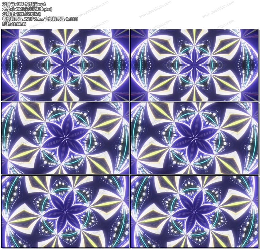 蓝色闪亮万花筒变换背景视频素材Kaleida