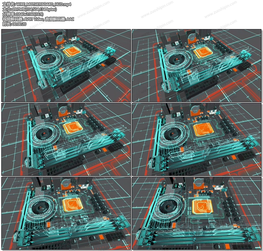 舞台背景> CGI数字电路主板4K视频素材 Digital Wire Motherboard in 4K CGI
