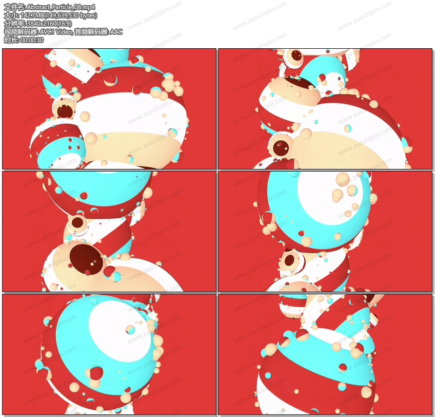 This abstract graphic displays a system of spheres merging together in a pattern reminiscent to gears. The graphic pans upward revealing an unending chain of these spheres continually merging together.