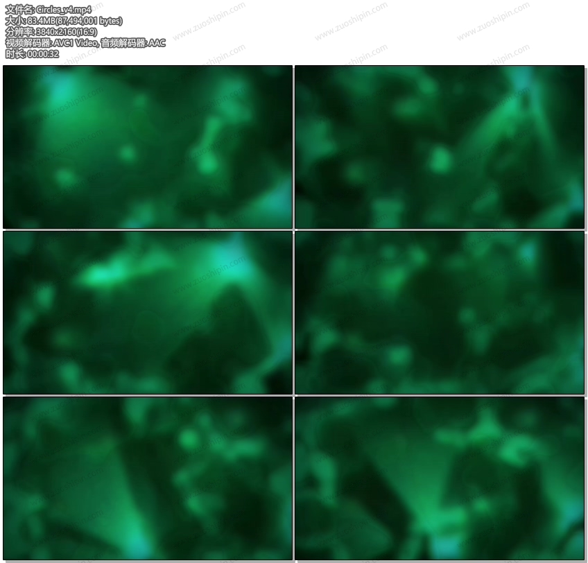 在发光的背景浮动半透明圈 这个图形动画显示了一些阴影半透明的圆形,在发光的绿色背景上浮动和合并在一起。