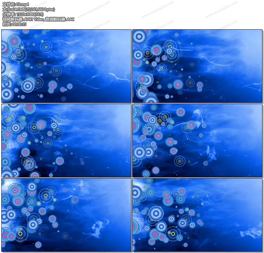 关键词:花纹,圆圈,蓝色,烟雾,视频