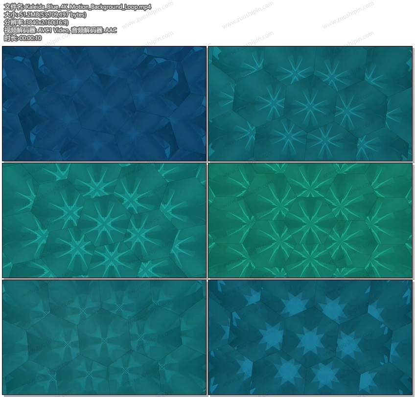 Kaleida蓝色4K行动背景圈 这个抽象的4K无缝循环运动背景可以在很多方面用于为您的视频项目增添生命。