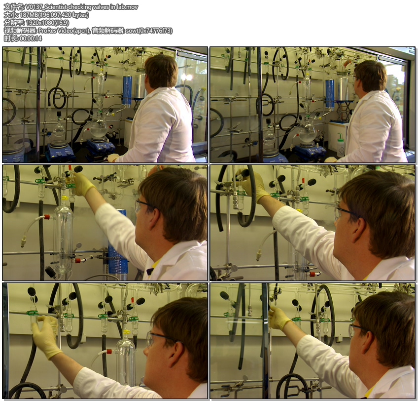 科学家在他的科研实验室检查实验室设备上的阀门。试管,烧杯,化学实验