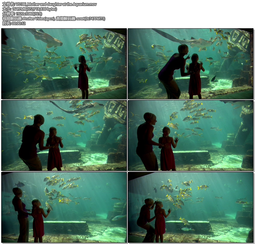 在这里,母亲和女儿在度假村享受水族馆的体验。 鱼在游泳,鲨鱼,鱼群,海洋馆。