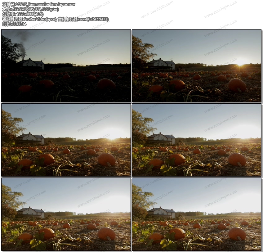 一个家庭的农田随着太阳在早晨升起的,南瓜地,延时摄影,时间流逝。